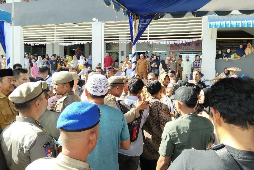 PANYABUNGAN – SahataNews | Audiensi antara Pemerintah Kabupaten Mandailing Natal (Pemkab Madina) dengan sejumlah pedagang Pasar Baru Panyabungan yang digelar pada Selasa, 30 September 2025, sempat diwarnai kericuhan.