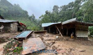 Selain merusak bangunan, banjir bandang turut menghanyutkan pakaian dan sekitar 300 kilogram hasil pertanian berupa kemiri milik korban.