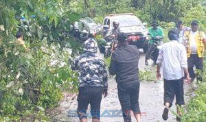 Beruntung para rombongan bersama sejumlah warga sekitar sigap membantu. Mereka membawa parang dan bergotong royong memotong kayu yang menutup jalan sehingga akses dapat dibuka kembali.