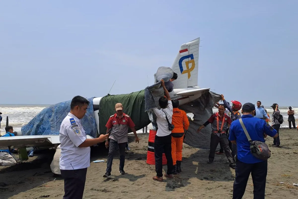 Pesawat Latih PK-PBC Mendarat Darurat di Pantai Cemara Sewu, Dua Awak Selamat