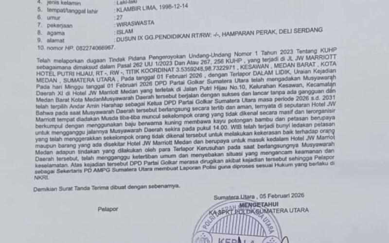 Ricuh di Luar Arena Musda Golkar Sumut Berujung Laporan Polisi