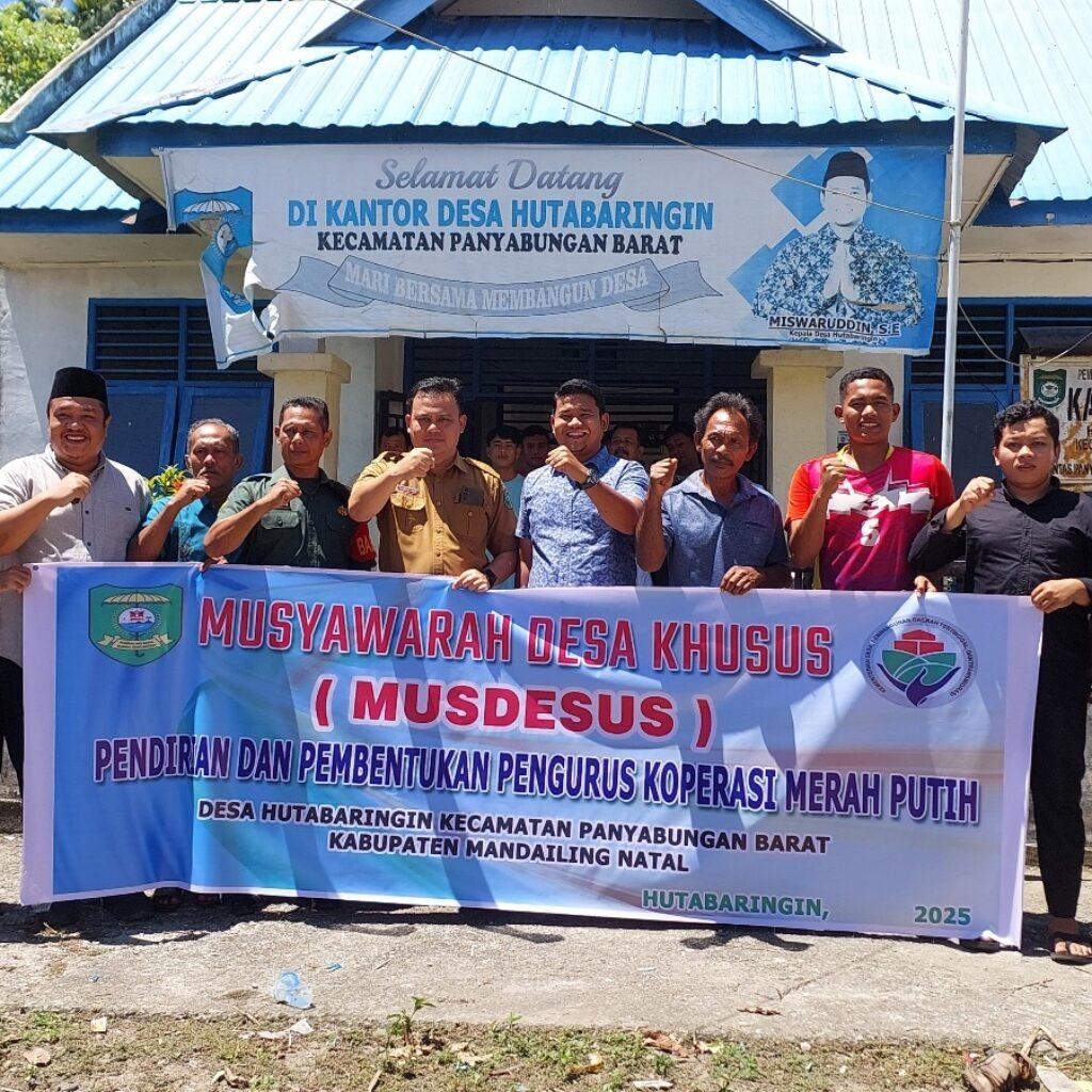 Panyabungan Barat – Pemerintah Desa Hutabaringin, Kecamatan Panyabungan Barat, Kabupaten Mandailing Natal (Madina), resmi membentuk Koperasi Merah Putih sebagai langkah strategis untuk meningkatkan kesejahteraan ekonomi masyarakat.