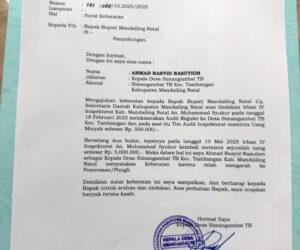 Madina – SahataNews | Hingga saat ini, hasil pemeriksaan khusus (Riksus) terhadap Irban IV Muhammad Syukur Siregar terkait dugaan pungutan liar (pungli) masih menjadi misteri. Inspektorat Kabupaten Mandailing Natal (Madina) belum melaporkan hasil Riksus tersebut, meski laporan resmi telah diajukan Kepala Desa Simangambat TB, Ahmad Rasyid Nasution.
