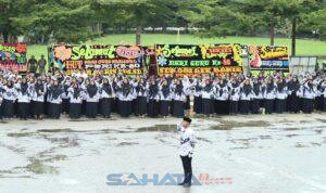 SahataNews – Panyabungan | Hujan deras yang mengguyur sejak pagi tak mampu menghentikan semangat ratusan guru di Kabupaten Mandailing Natal (Madina). Dalam kondisi basah kuyup, mereka tetap tegak mengikuti upacara peringatan Hari Guru Nasional (HGN) ke-80 di pelataran parkir Masjid Agung Nur Ala Nur, Panyabungan, Selasa (25/11/2025).