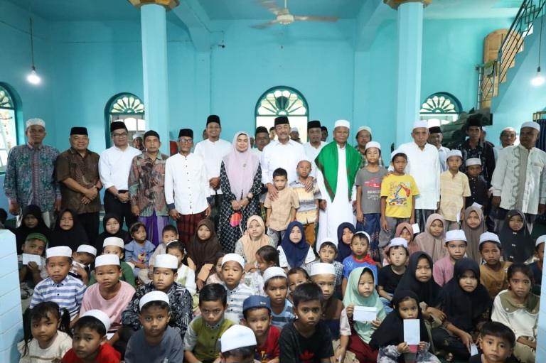 Selain menyantuni 162 anak yatim dan piatu, Bupati Saipullah juga menyerahkan Al-Qur’an, kain sarung, dan mukena kepada BKM Masjid Baiturrahman.(Rizqi)