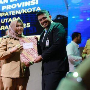 Lubuk Pakam – SahataNews | Pemerintah Kabupaten Mandailing Natal (Pemkab Madina) menerima dua penghargaan sekaligus dari Pemerintah Provinsi Sumatera Utara (Pemprov Sumut). Penghargaan pertama berupa Universal Health Coverage (UHC) yang diserahkan oleh Direktur Kepesertaan BPJS Kesehatan, David Bangun, serta sertifikat pembagian Dana Bagi Hasil (DBH) yang diberikan langsung oleh Gubernur Sumut, Muhammad Bobby Afif Nasution.