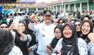 Meski demikian, dia tak menampik masih banyak hal-hal yang perlu diperbaiki oleh seorang guru, baik itu sikap maupun etika. “Bapak-bapak, Ibu guru, termasuk kita-kita kepala sekolah, mari tingkatkan kinerja kita, tingkatkan disiplin kerja, tingkatkan kerja sama kita, mulai dari kerja sama sesama guru, di sekolah, ke Dinas Pendidikan, termasuk ke Pemerintah Daerah,” pesan dia.