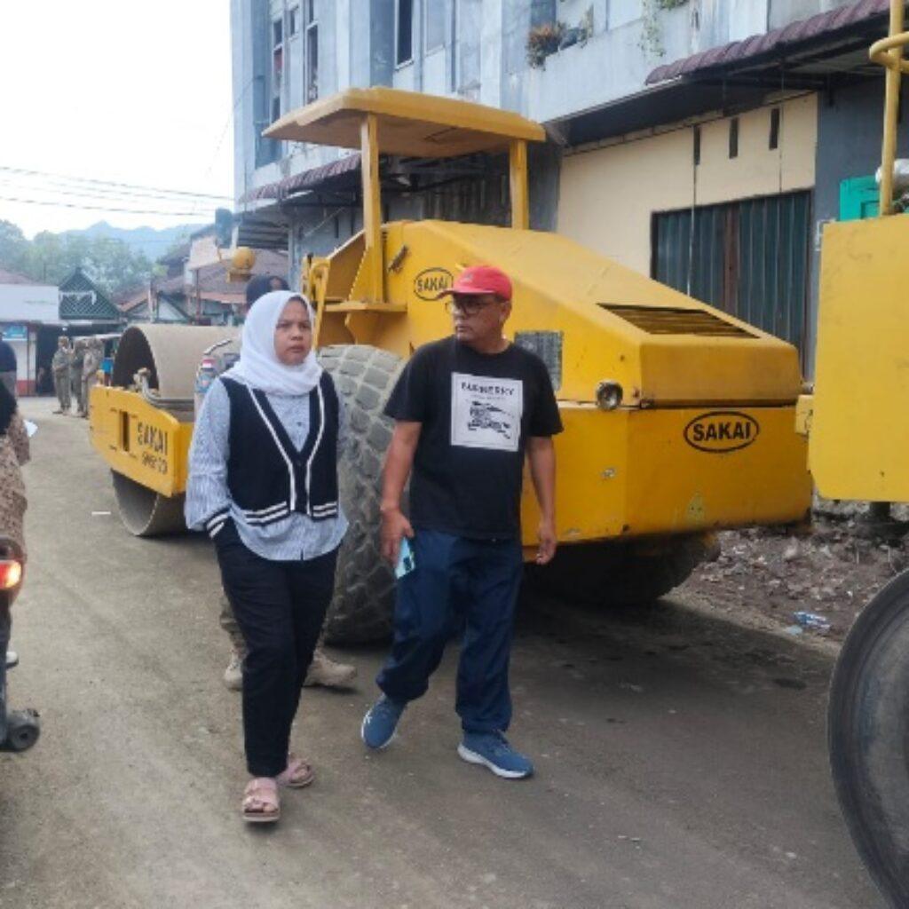 Plt kadis Pekerjaan Umum Penataan Ruang (PUPR) Elpiyanti Harahap damping Pj Sekda Mandailing Natal (Madina) Sahnan Pasaribu tinjau langsung lokasi pengaspalan jalan keliling Pasar Lama, Kecamatan Panyabungan, Sabtu (5/7/2025).