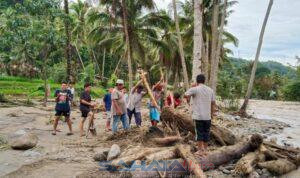 “Warga memanfaatkan cuaca cerah untuk membersihkan tumpukan sampah dan gelondongan kayu besar yang terbawa arus sungai dan menumpuk di pemukiman serta aliran air,” ujar Enda Mora.